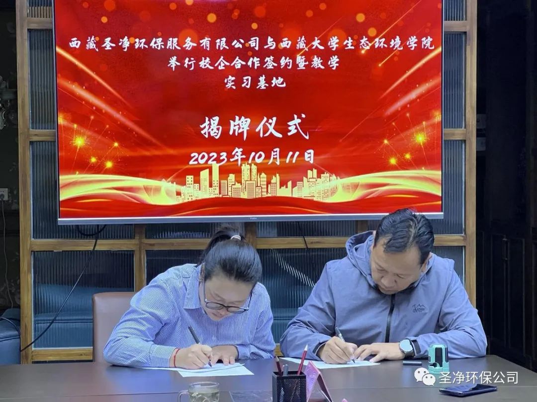 為進(jìn)一步加強(qiáng)學(xué)校與企業(yè)的合作,適應(yīng)產(chǎn)業(yè)發(fā)展的需求,共同做好畢業(yè)生的就業(yè)工作,并建立長(zhǎng)期的人力資源供需協(xié)作關(guān)系,優(yōu)化企業(yè)的人力資源管理,充分發(fā)揮各自優(yōu)勢(shì),促進(jìn)雙方事業(yè)的共同發(fā)展。2023年10月11日,西藏圣凈環(huán)保服務(wù)有限公司與西藏大學(xué)生態(tài)環(huán)境學(xué)院校企合作簽約暨教學(xué)實(shí)習(xí)基地揭牌儀式在我司會(huì)議室舉行。
