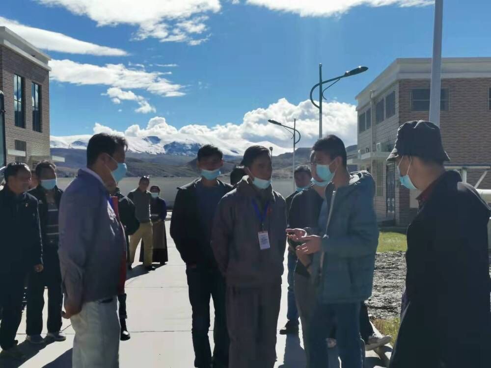 南木林縣污水處理廠工作人員和上級領導一起排查污水管網