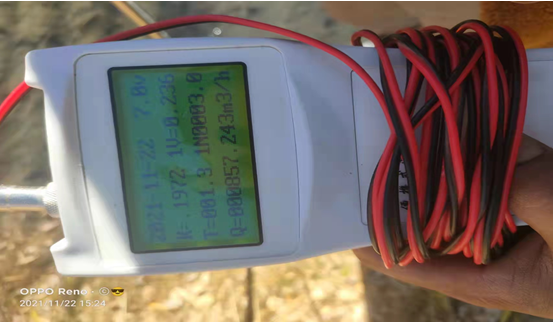 (處理完的水入河前現(xiàn)場(chǎng)圖和流速)
