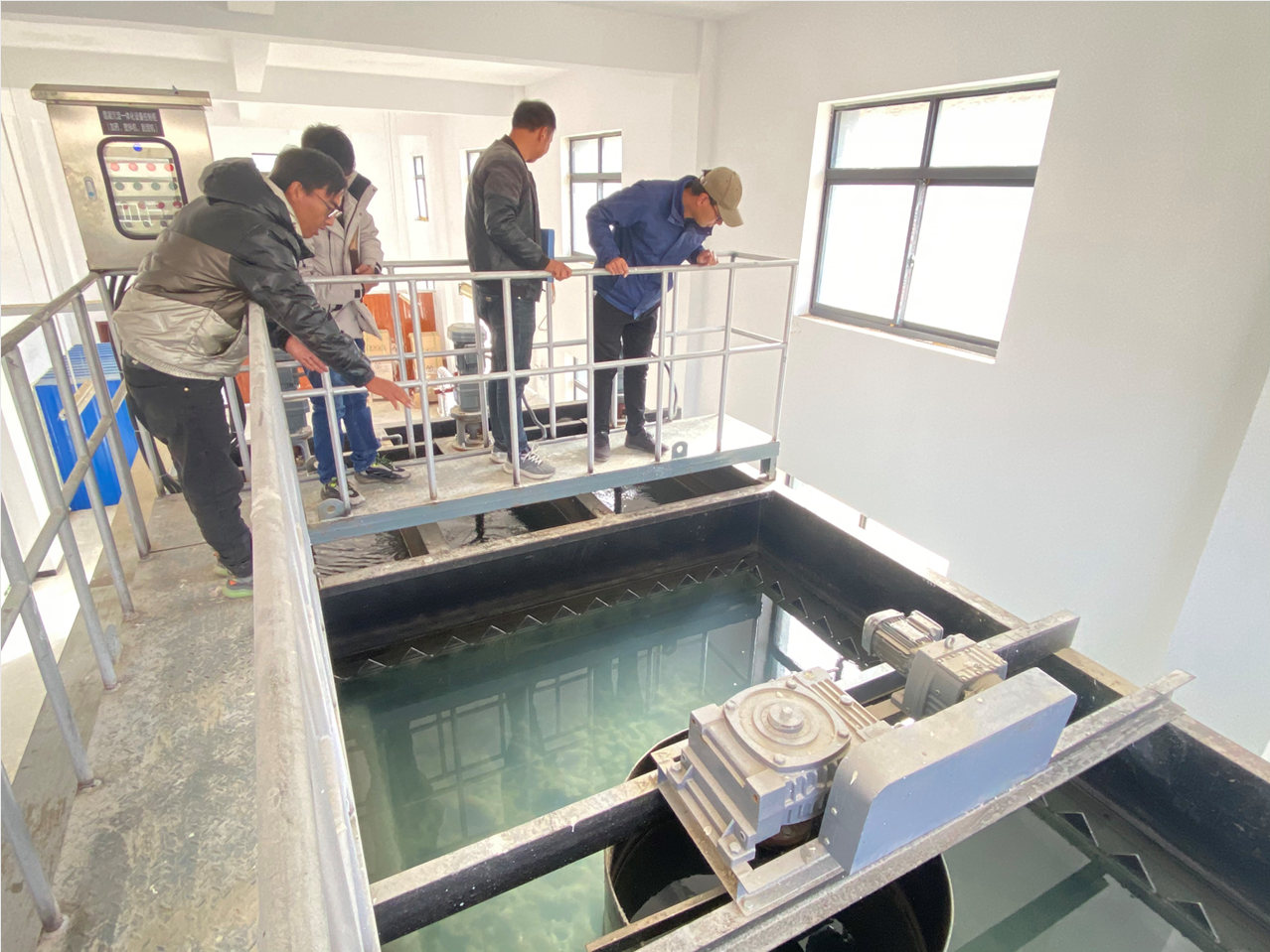 驗收組主要圍繞污水處理廠的工藝程序,逐步對相關(guān)車間進行了實地驗收,深入細致了解各車間的設(shè)備、功能及運行情況。